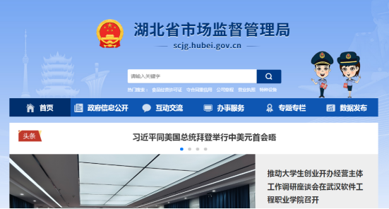 1.登錄湖北省市場監督管理局的官方網址:http://scjg.hubei.gov.cn/